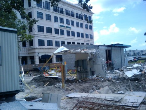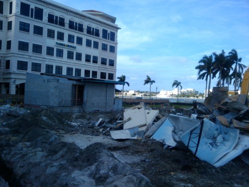 We will close out this chapter with two pictures of the old library area after the library was completely gone. The first is taken looking east (to get an idea of how the intracoastal waterway will now be visible from Clematis Street, even more so after the demolition fences are removed). The second is taken from the intracoastal side (no more library!)