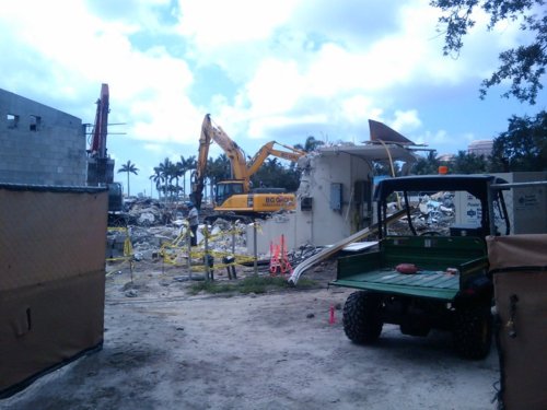 As of Friday June 5th, 2009, the old library on the eastern end of Clematis Street is finally gone. It took about three weeks for the demolition crew to finally get to the last surviving piece, which was on the north side, just adjacent to the 1 N. Clematis Street office building. The below pictures showing the library's final ending should be fun for history buffs and others who knew the old library since it was built in 1962. All that remains now is rubble, but also the great promise of a Clematis Street that is again opened up to the intracoastal waterway, thereby allowing us humans to derive greater enjoyment from the natural beauty that is already here in downtown West Palm Beach.