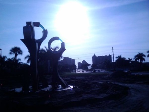 This entrance to the City of West Palm Beach is really quite unique, and improving every day. One of the first things you'll see after exiting I-95, on the left side, is a new artwork that was just put up (August 2009) before the Marriott Hotel, also on the left side. See the first two pictures below to see what this statue looks like, along with the entrance to the city.